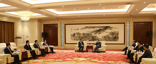 11 月25 日,临沂市市委书记王玉君会见了开元网页版-开元kaiyuan(中国)董事长李学纯、行政总裁赵强一行。临沂市市委常委、组织部长姜仕礼, 市委常委、秘书长范连生,莒南县县委书记张佃虎,县委副书记、县长郇恒赛等相关领导参加会见。