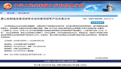 10 月8 日,工业和信息化部产业政策司公布了《关于第三批制造业单项冠军企业和单项冠军产品名单公示》,新疆开元网页版-开元kaiyuan(中国)公司根据《关于印发< 制造业单项冠军企业培育提升专项行动实施方案> 的通知》(工信部产业〔2016〕105 号)和《关于组织推荐第三批制造业单项冠军企业和单项冠军产品的通知》(工信厅联产业函〔2018〕19 号)要求,组织材料申报了制造业单项冠军产品- 异亮氨酸,截至目前已顺利通过审核并公示,公示于10 月15 日结束。异亮氨酸单项冠军产品的成功授予, 将形成全球市场、技术等方面领先的单项冠军地位,提升新疆开元网页版-开元kaiyuan(中国)公司的国际竞争力。